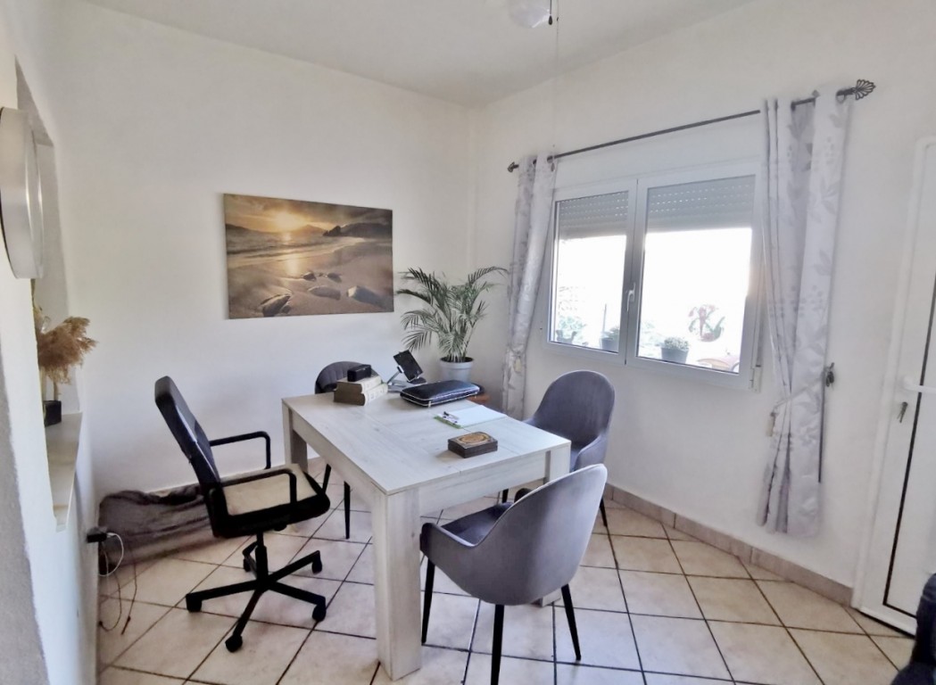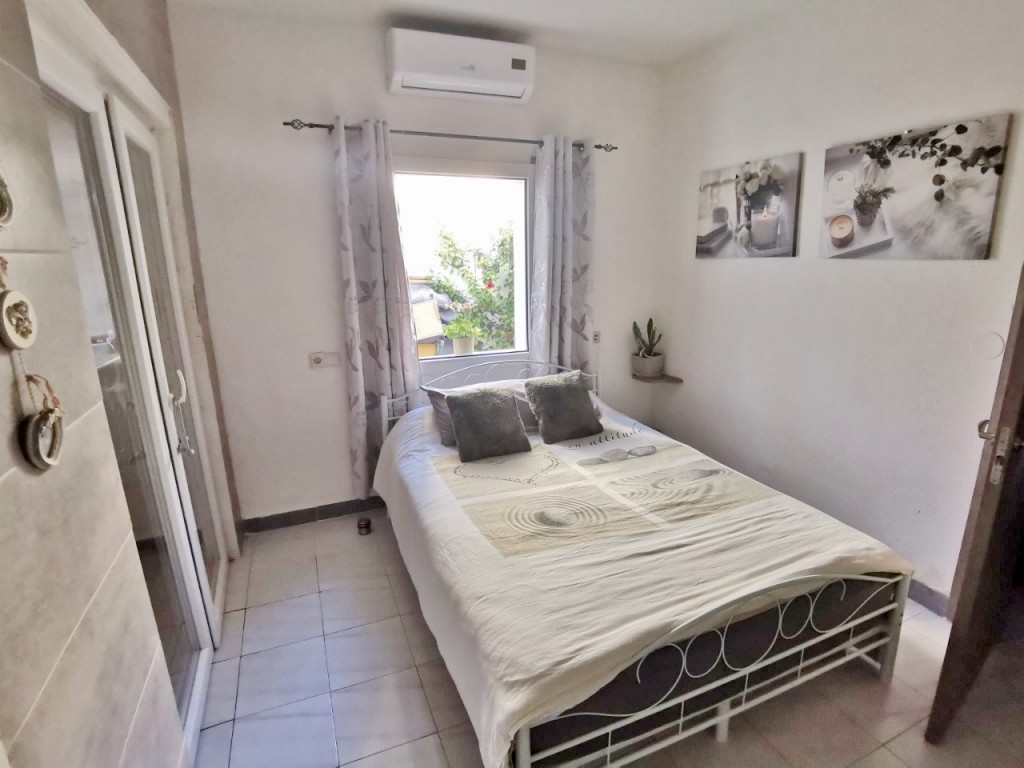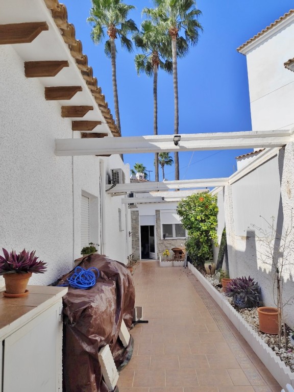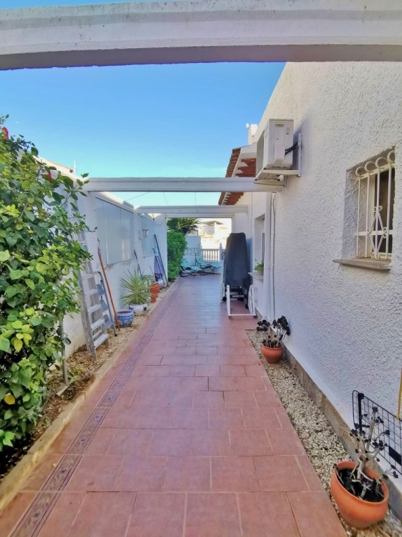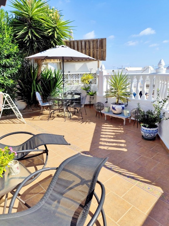 Dieses kleine und elegante Reihenendhaus befindet sich in der beliebten Wohngegend Blue Lagoon, nur wenige Minuten von den beliebten Stränden La Zenia und Campoamor entfernt. Es verfügt über ein 160 m² großes, komplett gefliestes und pflegeleichtes Grundstück. Es bietet vielseitige Möglichkeiten wie einen Grillplatz, eine Außenküche, einen Whirlpool oder eine Pergola. Auf der Rückseite des Hauses befindet sich ein weiterer Raum, der für Musikproben verwendet wird. Hier integriert sind auch ein Abstellraum und der Zugang zur Dachterrasse, von der Sie den Blick auf den Park und das Meer genießen können. Die Wohnfläche beträgt 87 m². Zusätzlich gibt es eine große Dachterrasse mit Blick auf den Park Blue Lagoon und das Meer. Der Wohnbereich ist in den Eingangsbereich unterteilt, in den sich das Esszimmer und eine kleine Couch harmonisch integrieren. Von dort aus betreten Sie das geräumige Wohnzimmer, das zum Entspannen einlädt. Die kleine, voll ausgestattete Küche bietet einen harmonischen Übergang zum Tageslichtbad und zum Schlafzimmer, das mit seinen gut eingebauten Kleiderschränken ausreichend Platz für allerlei Kleidung bietet. Vom Schlafzimmer aus besteht Zugang zum großen Fitnessraum, zum Abstellraum oder zur Dachterrasse.