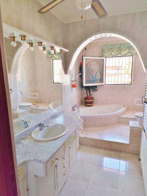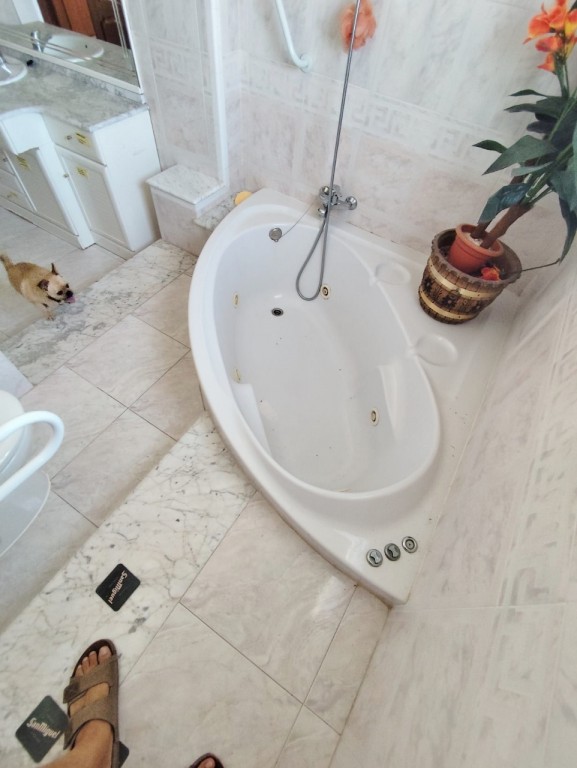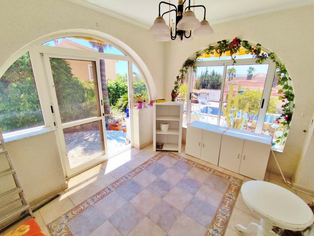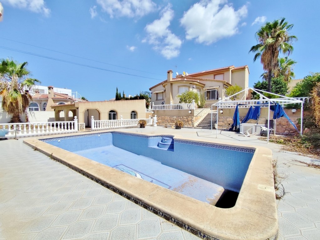 Nutzen Sie das Potenzial dieses freistehenden Hauses auf dem 927m² großen Grundstück mit der großen Doppelgarage, der umfangreichen Poolanlage mit Außenküche, WC, schöner gemauerter Pergola und natürlich der Außendusche.