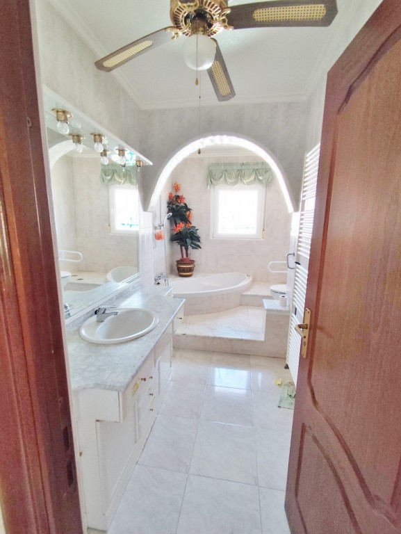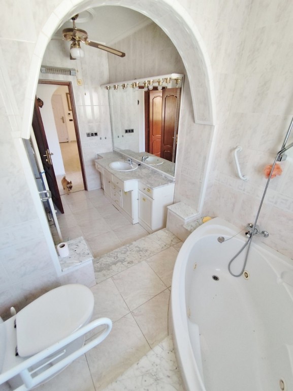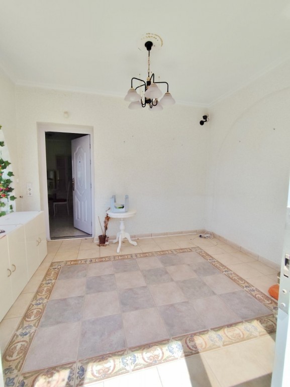Dieses Haus ist unterkellert und hat einen separaten Waschraum. Im Erdgeschoß befindet sich die Hauptwohnung mit dem Wohnzimmer, der separaten Küche mit Zugang auf die hintere Terrasse, dem Badezimmer, zwei Gästezimmer und einem großen Schlafzimmer mit eigenem Badezimmer.