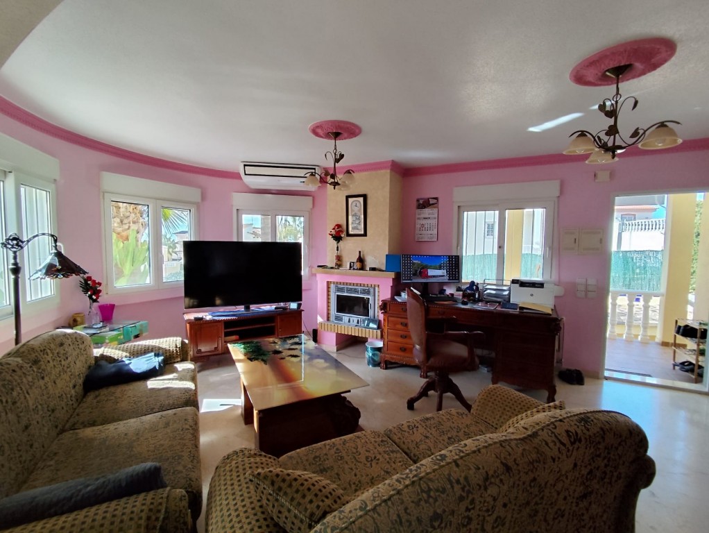In einer ruhigen Wohngegend von El Galán (San Miguel de Salinas) bei Villamartín befindet sich diese großzügige Villa auf einem etwa 400 m² großen Grundstück. Die Immobilie überzeugt durch viel Platz, flexible Nutzungsmöglichkeiten und eine attraktive Außenanlage mit privatem Pool sowie einem mediterran angelegten Garten.
